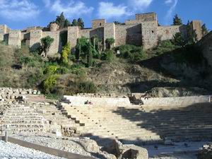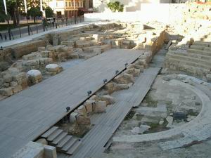 | アルカサバの横には、古代ローマ時代の円形劇場が残されている。しばし“客席”に腰を落ち着け、遥かな昔に思いを馳せるのもいいのでは。 演目は「ジュリアス・シーザー」か、それとも「白波五人男」か・・・。 |