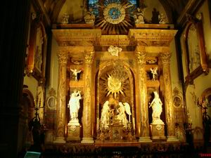| マラガのカテドラルの祭壇。 これはこれで素晴らしいカテドラルだったのかもしれないが、セビリアで度肝を抜かれるほど巨大なものを見た直後だけに、ちょっと見劣りが。 |