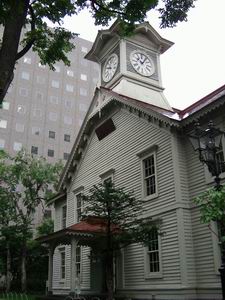 | 札幌観光の定番、時計台。前にも行ったけど、一応は見とかないとね。 実は今回、札幌ドームにも行きたかったんだけど、プロ野球はオールスターゲームのために中断、コンサドーレは福岡遠征中、エアロスミスのコンサートのために見学者用のツアーも休みと、どうもタイミングが悪かった。残念。 |