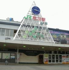 | 小樽の16.5度に驚いてはいられない。夜の9時頃、旭川駅に到着すると、ビルの壁面の温度計に12度の表示が。こりゃ、東京の冬の気温だ。 ここ何年か列車で長距離を移動する旅をしていなかったが、札幌−旭川は久々に特急列車に乗った。ちまちま時刻表を調べていたら、学生時代に戻ったような気分になった。 旭川駅には夏でも雪のイルミネーションが。 |