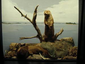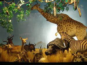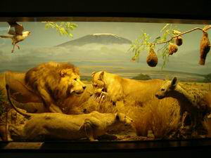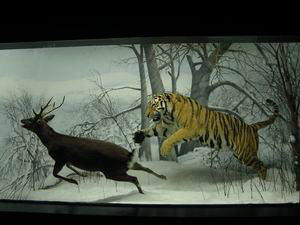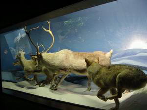 この博物館、たまたま私の宿泊したラマダ・プレジデンティ・ホテルの目の前にあった。左の写真も客室の窓から撮っている(余談ですが、ヘルシンキでは市電が今もバリバリにがんばってます)。「地球の歩き方」にも載っていないし、ヘルシンキ・カード(市営交通機関や美術館の無料パス)の案内書の「絶対行くべし」というページにも載っていない。ま、すぐ近くだし、ヘルシンキ・カードを使えばタダだし、ちょこっとのぞいてみるか、という程度の軽い気持ちで寄ったのだが・・。 行って圧倒された。人生どこに発見が転がっているかわからない。何がすごいって、動物の剥製展示の素晴らしいこと。漫然と四つ足で立っているような剥製は1体もない。疾走する捕食者と獲物。メスを巡る争いの中で躍り上がるオス。大きな角を持てあますように首を振るムース。生きているような、とはこのこと。背景の絵やショーケース内の小道具と相まって、見事に自然界の一瞬が切り取られている。 論より証拠。その展示のいくつかをご紹介します。「ステレオ写真館3:ヘルシンキ自然史博物館」のコーナーも合わせてご覧ください。 (無許可なので、転用はご遠慮ください) |