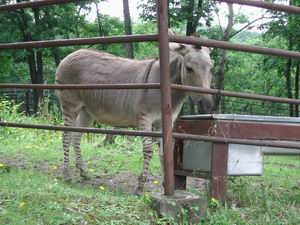 | これ何だと思います? 「ドブラ」、すなわちドンキー(ロバ)のオスと、ゼブラ(シマウマ)のメスのあいのこである。道理で見たことないはずだ。 昔はレオポンだの、ライガーだのと、異種交配が盛んに行われた時期があったが、今ではとんと聞かなくなった。生命倫理への意識が高まった昨今、久々に見たハイブリッド種だった。 |