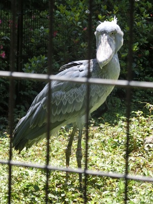| 野生状態では何時間も微動だにせず、獲物を油断させることで知られるハシビロコウ・・・なんだけど、ここの2羽はどちらもけっこう動いていた。 獲物を油断させなくても人間から餌をもらえるし、そもそも油断させるべき両生類や爬虫類はいないのだから、不動の姿勢を取る必要はたしかにないわけだな。 ちなみにこの園のハシビロコウはけっこうな人気者らしく、園内のレストランで出す割り箸の袋にも、レッサーパンダの風太くんと並んで描かれている。 ![]() |
