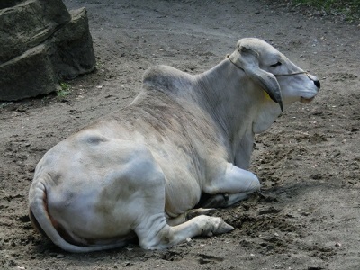 ヨーダのように大きな大きな耳をした白牛(ゼブー種)。説明書きによれば、「8代将軍徳川吉宗が、オランダ人にすすめられて」輸入し、「白牛酪というバターに似た乳製品を作り、薬として使っていた」のだとか。明治になってからホルスタインに駆逐されたようです。 鼻から口元にかけてがなんだか犬っぽいよね。 |