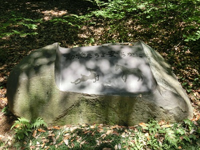 | 園内の一角にある慰霊碑。 余談ながら、動物園と千葉市の中心部を結ぶモノレールがカッコいいので、特に鉄道ファンではない私も目を見張った。中にはアニメファンが喜びそうなこんな車両も。 ![]() |