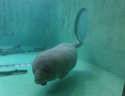 メキシコから寄贈されたマナティー。こちらもすでに40年ぐらい在籍しているようだ。 |