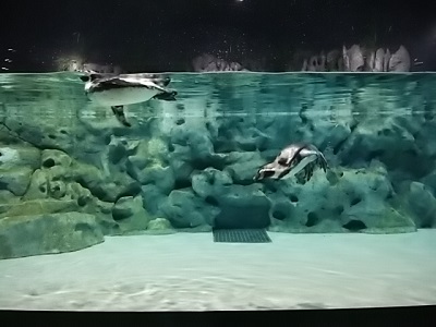 おそらくペンギンは、調達や飼育が比較的容易な動物なのだろうと思う。だってほとんどの動物園や水族館で飼われているし、一施設あたりの飼育数もけっこう多いもの。ドキュメンタリー番組などでは数億羽のコロニーなんてのも見ますよね。 ところが、ところがですよ、ここにはご覧の2羽のフンボルトペンギンしかいない。とりあえず一つがい見せれば、客は満足するだろうという想定か。 まあ、飼育エリアの広さからすると、これから増やしていくつもりはあるようなので、今後に期待ですかね。 |