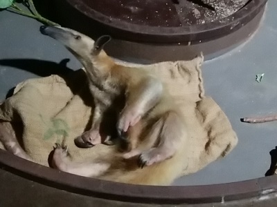 | 「陸にすむ生き物」のエリアでも、カワウソ1匹、アリクイ1匹、カピバラ1匹、ナマケモノ2匹と、全体に飼育頭数は寂しい。乏しい予算をやりくりし、とりあえず何種類か見繕って連れてきたという感じですね。 一時期、サンシャイン水族館のアリクイがケージから脱走を繰り返して話題になったけど、こちらのコアリクイも、飼育員さんによれば、たまにいなくなるそうです。 |