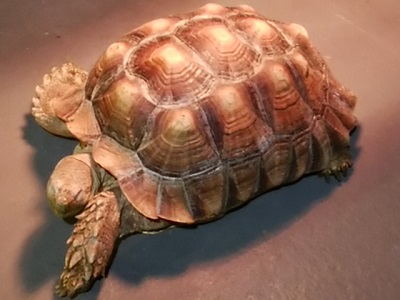 ケヅメリクガメの前肢は恐竜か怪獣みたいにとげとげだ。大根おろしが作れそうですね。 生存に有利だからとげとげになっているのだろうが、これが役立つ場面があまり思い浮かばない。アフリカでは大根おろし食べないだろうし。 |