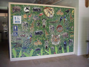 | トイレの入り口のレリーフは、この園にすむ動物の絵柄。 | |