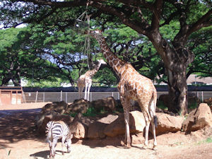 | カピオラニ公園内にあるホノルル動物園。ワイキキビーチからは目と鼻の先だ。2011年1月にはオバマ大統領親子も訪れた。 | |