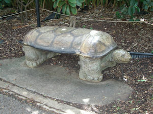 | ハワイではホヌ(海ガメ)がとても愛されているらしく、アロハシャツの模様にカメ、アクセサリーのデザインにカメ、動物園のベンチにもカメ(これは陸ガメみたいだけど)。 | |