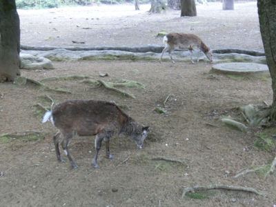 広々とした「大放飼場」にはヤクシカがまばらにいるのみ。天王寺動物園で言えばキリンやシマウマが闊歩しているところなので、ちょっと寂しい。 奈良公園では増えすぎたシカを駆除しなければならなくなっているとか。それならここに20〜30頭移せばとも思うのだが、東京都もオリンピックと市場移転問題で予算はかつかつかな。 ヤクシカたちはサツキか何かの散った花びらを丹念に拾って食べていた。蜜が付いてて甘いのかも。 |