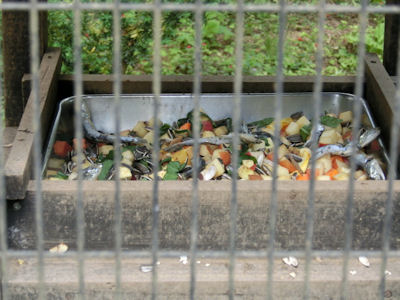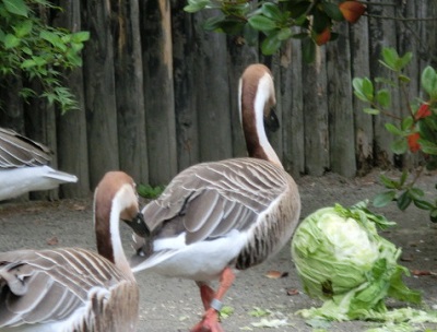 | 吉祥寺通りを挟んだ分園には、主に水生の生物と鳥類が。 この動物園って、エサのあげ方が割にアバウトなようで、こんなふうにレタスが丸ごと置かれていたりする。 菜っ葉も束のままだった。 |
