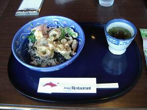| レストランで「イカ天丼」を頼んだら、筒状に切った胴体や、ゲソを揚げたものが出てきて驚いた。関東地方の人間がイメージする「イカ天」と全然違いますね。 |