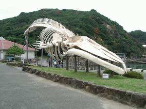 | 博物館の裏手には巨大なクジラの骨格が。 顔がデカいこと。 |