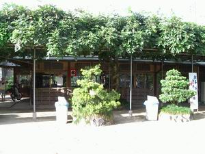 | 飲食施設も昭和の趣き。いや、1903年(明治36年)に開園した日本で2番目の動物園だというから、もしかしたら明治の近代化遺産か? 公平を期すために、2004年に完成した近代的なサル舎があることもお伝えしておくが、入居したゴリラとチンパンジーのうち、チンパンジーの初子が今年(2007年)5月に死亡し、施設の半分は空き家になっていた。強化ガラスに貼られた遺影が物悲しかった。 |