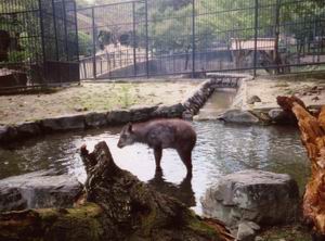 | 背後に見えるのは東山方面の山か。 ここはけして広い動物園ではないけれど、それでも1200年前から市街化されてきた町の真ん中で、動物園という悪臭や騒音とは切っても切れない施設を運営するのは、ひとかたならぬ苦労があるはずだ。 民家ではなく、平安神宮、美術館、琵琶湖疎水などに囲まれた立地条件だからこそやっていけるのだろう。 |