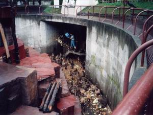 | ・・・ふと気づくと、体の小さい奴が鉄格子を抜けて出てきている。古いギャグ漫画だよ、これじゃ。 この翌日、旭山動物園に回ると、「こんな立派な動物園ができちゃったら、もう円山動物園なんて行けないねえ」という声も聞こえてきた。だけどどうして、円山だってがんばっている。要は、いかに来園者を楽しませるかということ。設備もさることながら、動物園にはソフト面の創意工夫が欠かせないのである。 |