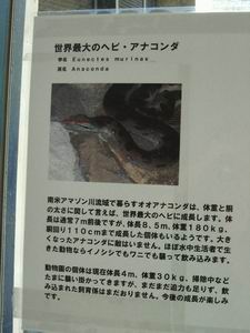 | アナコンダの説明書き。最後が笑えます。「掃除中などたまに襲いかかってきますが、飲み込まれた飼育係はまだおりません」 | |