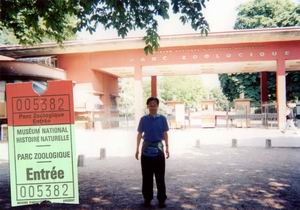 | パリの動物園は市街地東部のバンセンヌの森にある。実は旅行中、美術館の職員ストにもろにぶつかってしまい、オルセーもルーブルもほとんど見られなかったので、緑に囲まれた動物園は、ことさらにオアシスに思えた。 左側に見えているのが入場券だ。ご覧の通り人の背丈より大きい・・・わけないだろ! |
