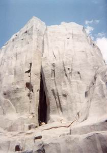 | この動物園の展示方式は、よく言えばオーソドックス、悪く言えば旧態依然という印象。 そんな中で一際、目を引かれたのが、この人造の岩山だ。高さ70メートルで、頂上付近は展望台になっている。岩山の内部にはエレベーターが設置されていて、これは別料金。チケット売りのお兄ちゃんに「One person,please」と言ったら、「英語なんかわからないよ」と返されてしまった。 岩の裂け目の根本部分に、角の生えた羚羊がいるのがおわかりだろうか。ただの展望台として利用しているのではなく、ちゃんと岩場で暮らす動物を飼育しているのですね。 |