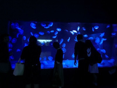 以前、油壺マリンパークに行った時には、近くの海岸におびただしい数のクラゲが打ち上げられていて驚いた。それをこうして水槽に入れると一転、観光資源になってしまうとはこれいかに。
