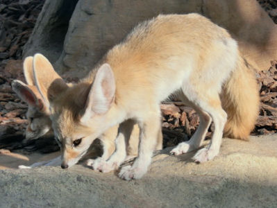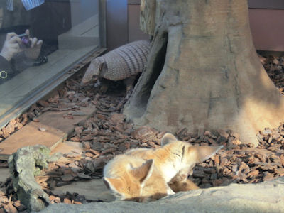 水族館とは言いながら、サンシャインでは昔から若干の哺乳類も飼育している。 こちらはお耳の大きなフェネックのコンビ。延々と寝たふりをしていたが、この時だけは2匹そろって立ち上がった。 |