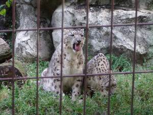 | ユキヒョウの兄弟。時々ワイルドにじゃれ合っているのは狩りの稽古ですね。 何やらマヌケな表情を見せているが、これは「フレーメン」と呼ばれる現象だ。ウマなども、よくこういう表情を見せることがある。人間の目には、まるで笑っているように見えるんだよね。 |
