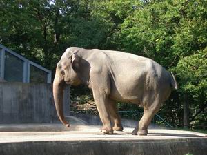| 多摩動物園にはアフリカゾウとアジアゾウが両方いる。こちらは後者。スチール写真ではわからないだろうが、延々スティービー・ワンダーのように首を振り、体を揺すっていた。ほら、尻尾がスウィングしてる。 ちなみに今回、アジアゾウとインドゾウの区別が初めてわかった。インドゾウというのは、セイロンゾウ、マレーゾウ、スマトラゾウなどと共に、アジアゾウの下部分類なんですね。この彼はセイロンゾウである。アジアゾウではあるが、インドゾウではない。 |
