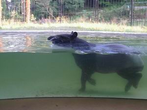 | 夢を食って生きるバク。立体的な観察ができる最先端の獣舎で暮らしている。しかしまあ、プールの水の汚いこと。自分が泳ぐ(そしてたぶん飲む)水の中にフンをするなよ。 | |