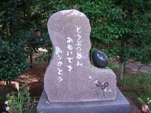 | 「アジア園」の奥の方にある動物慰霊碑。我々を楽しませてくれた動物たちがここに眠り、新たな卵を温めているという構図ですね。 どうぶつさん、おもいでを、ありがとう。 |
