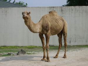 | こちらはヒトコブラクダ。 昨今の動物園は、アフリカならアフリカ、オセアニアならオセアニアと、生息地ごとに動物をまとめて展示するところが増えている。だが規模の小さい東武動物公園では、今もサルならサル、ネコならネコといった系統ごとの展示だ。 展示方法としては旧式なのだが、今回、これも意外に合理的じゃんと思わされた。こんなふうにフタコブラクダとヒトコブラクダが並んでいると、両者の体型や、毛の生え方の違いが如実にわかりますよね。 |