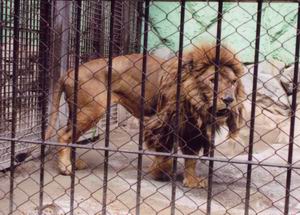 | 換毛の季節を迎え、ライオンのたてがみも「ボロは着てても」状態。池袋の公園にいるレゲエのオジサンみたいになっていた。 トラ、ライオン、ジャガー、ピューマ、ヤマネコ…。一般の方は、たとえばライオンとピューマの大きさの差、ヒョウとジャガーの模様の違いなど知らないと思うけど、こうしてネコ科ばかりを集めて展示すると、その体格や声、模様の差異などが一目で分かる。 ご覧の通り檻は狭くて旧式で、エンリッチメントの観点からはあまり高得点の付けられない動物園ではあるけれど、意外に見どころは多い。 |
