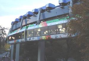 | 東園と西園をつなぐモノレール。私は乗ったことがない。歩いてイソップ橋を渡ってもわけはないからだが、徒歩用のあの通路、なんにもなくて、もう一つ面白くありませんね。壁に豆知識コーナーを設けるとか、路面に動物の足跡を付けるとか、一工夫お願いしたいところである。 | |