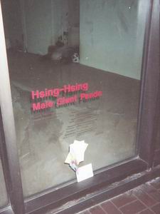 オスのジャイアントパンダ「シンシンhsinghsing」。暗くていささか見づらいが、奥の方で仰向けに寝転がっている。パンダはここでも怠惰であった。 この1年半前にメスのリンリンをなくしてヤモメ暮らし。リンリンの飼育舎のガラスには、死を悼む子供たちからの手紙が所せましと掲示されていた。 その後、このシンシンも天寿をまっとうしたらしい。先日、NHKで放送中の海外ドラマ「ザ・ホワイトハウス」を見ていたら、広報部スタッフと広報部長が「死んだパンダの代わりをもらいましょう」「このところ我が国と中国は友好的な関係にないんだ」とやり合うシーンがあった。 |